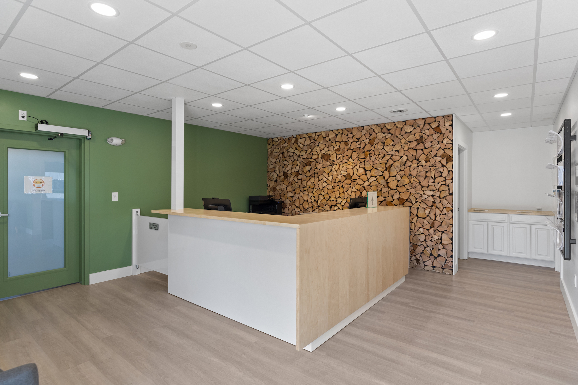 Black acoustic ceiling tiles were installed in the dispensary area and the buildout features new tongue-and-groove LVT flooring throughout. The dispensary includes separate drive-through and walk-up windows, for ease of convenience for Prime ATC’s patients. An existing bathroom and kitchenette area were repurposed to create space for Prime ATC’s new vault.