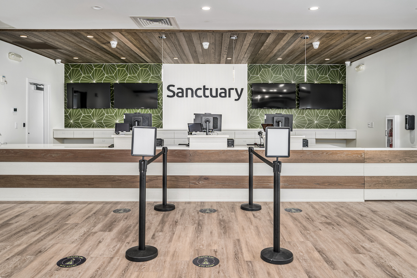 Vantage Builders followed designs by Caveney Architectural Collaborative in each project. The dispensaries all feature Sanctuary Medicinals’ distinct style and branding; wood walls, high-end millwork, specialty ceilings and faux wood beams that create an inviting yet professional atmosphere. Ample lighting ensures that the locations are bright and welcoming, and the operational flow of the stores helps patients feel cared for and unhurried. The dispensaries feature new MEP and HVAC systems, and Vantage Builders completed significant site work.